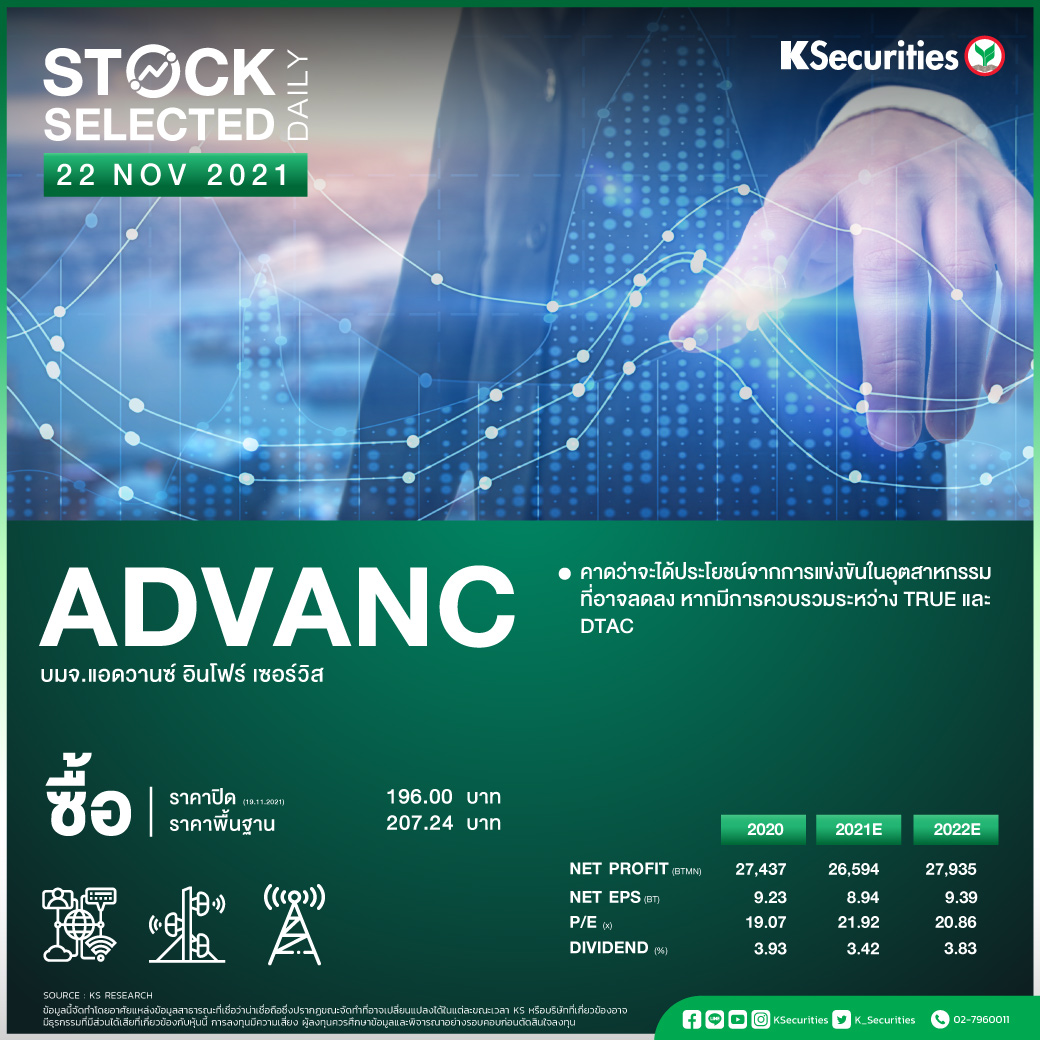 หน้าแรก บทวิเคราะห์หุ้น ADVANC แนะนำ ซื้อ ราคาพื้นฐาน 207.24 บาทบทวิเคราะห์หุ้นADVANC แนะนำ ซื้อ ราคาพื้นฐาน 207.24 บาท พฤศจิกายน 22, 20217930FacebookTwitterPinterestWhatsAppLINE บล.กสิกรไทย: ADVANC: บมจ.แอดวานซ์ อินโฟร์ เซอร์วิส ราคาปิด (19.11.2021) 196.00 บาท ราคาพื้นฐาน 207.24 บาท – คาดว่าจะได้ประโยชน์จากการแข่งขันในอุตสาหกรรมที่อาจลดลง หากมีการควบรวมระหว่าง TRUE และ DTAC.- Advertisement -บทความที่เกี่ยวข้องเพิ่มเติมจากผู้เขียนกลุ่มท่องเที่ยวนำตลาดวันนี้BA มองบวกเล็กน้อยต่อข้อมูลการประชุมวันนี้EGCO การประชุมนักวิเคราะห์ 4Q25 โทน Positive- Advertisement -- Advertisement -- Advertisement - - Advertisement -