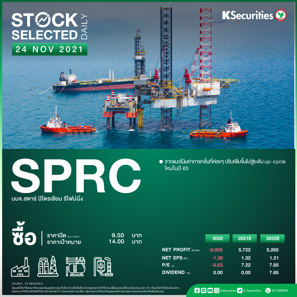 หน้าแรก บทวิเคราะห์หุ้น SPRC แนะนำ ซื้อ ราคาเป้าหมาย 14 บาทบทวิเคราะห์หุ้นSPRC แนะนำ ซื้อ ราคาเป้าหมาย 14 บาท พฤศจิกายน 24, 20216750FacebookTwitterPinterestWhatsAppLINE บล.กสิกรไทย:SPRC : บมจ.สตาร์ ปิโตรเลียม รีไฟน์นิ่ง ราคาปิด (23.11.2021) 9.50 บาท ราคาพื้นฐาน 14.00 บาท – จากแนวโน้มค่าการกลั่นที่ค่อยๆ ปรับเพิ่มขึ้นไปสู่ระดับ up-cycle ใหม่ในปี 65.- Advertisement -บทความที่เกี่ยวข้องเพิ่มเติมจากผู้เขียนGULF รับเม็ดเงินลงทุน Data Center ทะลักเข้าไทย ผสานธุรกิจนำเข้า Gas เข้าสู่ Wave ใหญ่INSET ชูธีม Data Center หนุนกำไร–Re-rate Valuation เปิด Upside รอบด้านTAN คาดกำไรฟื้นตัวขึ้น QoQ แต่การเติบโตระยะยาวยังอ่อนแอ- Advertisement -- Advertisement -- Advertisement - - Advertisement -