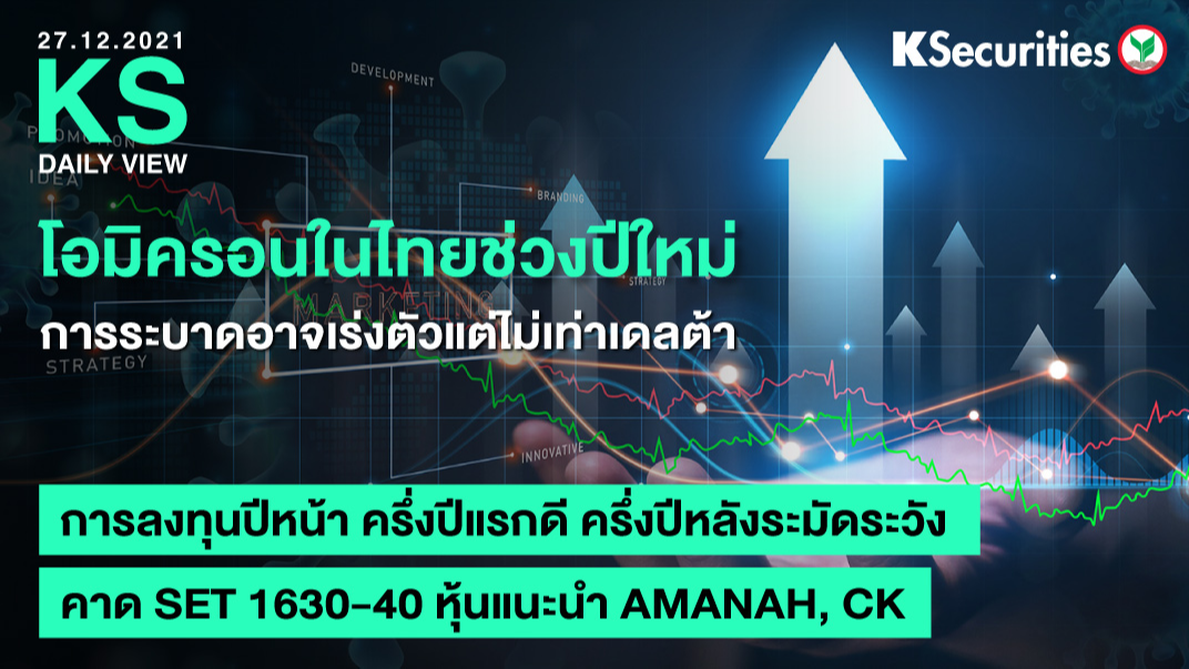 ปัจจัยภายในประเทศ: สถาณการณ์การระบาดโควิดในประเทศดูดีขึ้นต่อเนื่อง โดยการฉีดวัคซีนสัปดาห์ล่าสุดเร่งตัวขึ้นเป็น 2.4-2.8 ล้านโดสต่อสัปดาห์ ทำให้มีการฉีดเข็ม 1 ล่าสุดมีสัดส่วนเป็น 70.8% ของจำนวนประชากรทั้งหมด ส่วนเข็ม 2 คิดเป็น 63% และเข็ม 3 คิดเป็น 8.6% ของจำนวนประชากรทั้งหมด สำหรับเคสอาการหนักและจำนวนผู้เสียชีวิตอยู่ในทิศทางปรับตัวลงต่อเนื่อง อย่างไรก็ตามติดตามสถาณการณ์โอมิครอนในไทยที่เริ่มเห็นการแพร่ระบาดเร่งตัวขึ้น ขณะที่เทศกาลช่วงปีใหม่อาจเร่งการติดเชื้อได้ ทั้งนี้เรายังมีมุมมองให้น้ำหนักไปทางโอมิครอนไม่น่าจะส่งผลให้จำนวนผู้ป่วยอาการหนักและเสียชีวิตในประเทศเร่งตัวอย่างมีนัยยะและคาดว่าสายพันธุ์โอมิครอนมีแนวโน้มทำให้โควิดกลายเป็นโรคประจำถิ่นในที่สุด