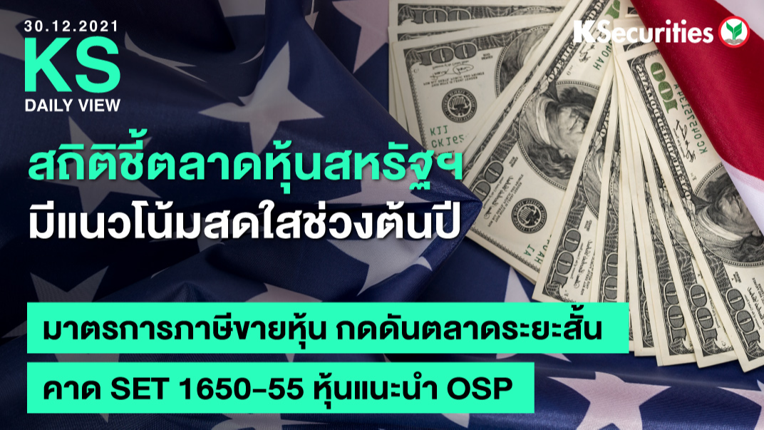 ตลาดต่างประเทศ: ตลาดหุ้นสหรัฐฯ และตลาดหุ้นยุโรปทรงตัวในวันสุดท้ายของปี ท่ามกลางการซื้อขายที่เบาบาง หลายสถิติข้อมูลในอดีตบ่งชี้แนวโน้มตลาดหุ้นสหรัฐฯปรับตัวขึ้นต่อในต้นปีหน้า โดยอีกหนึ่งสถิติที่น่าสนใจตั้งแต่ปี 1973 พบว่าดัชนี S&P500 หากปีไหนที่เดือนธันวาคมมีความผันผวนสูงที่สุดใน 12 เดือนของปีนั้น มีโอกาสสูงถึง 80% ที่ผลตอบแทนในเดือนมกราคมของปีถัดไปจะเป็นบวก โดยให้ผลตอบแทนเฉลี่ย +2.9% ซึ่งเราคาดว่าสำหรับรอบนี้ก็มีความเป็นไปได้สูงที่ตลาดหุ้นสหรัฐฯ อาจจะปรับตัวขึ้นต่อช่วงต้นปีตามสถิติในอดีต หลังโอมิครอนดูคลายความกังวลลงไปและจะเริ่มมีปัจจัยเรื่องการรายงานผลประกอบการบริษัทจดทะเบียนเข้ามาสนับสนุน