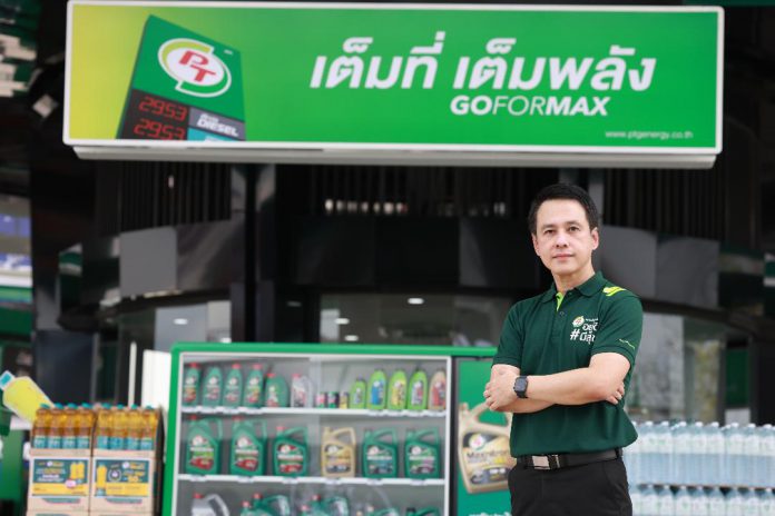 สำหรับสถานีบริการน้ำมัน ได้รับการออกแบบสไตล์โมเดิร์น ติดตั้งหัวจ่ายน้ำมันระบบดิจิทัล รวม 30 หัวจ่าย เพิ่มความสะดวกในการเติมน้ำมัน พร้อมจัดการเดินรถแบบวงเวียน ให้รถวนเคลื่อนที่ไปในทางเดียวกัน รวมทั้งนำเทคโนโลยีและนวัตกรรมทันสมัยมาใช้ในการให้บริการ เพื่อความสะดวกรวดเร็วและสร้างความพึงพอใจสูงสุดให้กับผู้ใช้บริการ รวมทั้งจัดจุดให้บริการชาร์จรถยนต์ไฟฟ้า (EV) ภายในสถานีบริการ ซึ่งจะทำให้ PT Max Park Salaya เป็นมากกว่าสถานีบริการน้ำมัน