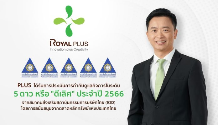 บริษัท โรแยล พลัส จำกัด (มหาชน) หรือ PLUS ผู้นำธุรกิจเครื่องดื่มน้ำมะพร้าวสุดพรีเมี่ยม โชว์ความเป็นเลิศด้านการดำเนินงาน ได้รับคะแนนการประเมินการกำกับดูแลกิจการในระดับ 5 ดาว หรือ “ดีเลิศ” (Excellent CG Scoring) เป็นปีแรก หลังจากเข้าจดทะเบียนในตลาดหลักทรัพย์แห่งประเทศไทยเพียงปีเศษ ในโครงการสำรวจการกำกับดูแลกิจการบริษัทจดทะเบียนไทย (CGR) ประจำปี 2566 ที่จัดขึ้นโดยสมาคมส่งเสริมสถาบันกรรมการบริษัทไทย (IOD) ภายใต้การสนับสนุนของตลาดหลักทรัพย์แห่งประเทศไทย และสำนักงานคณะกรรมการกำกับหลักทรัพย์และตลาดหลักทรัพย์ (ก.ล.ต.)