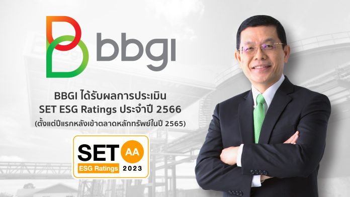 นายกิตติพงศ์ ลิ่มสุวรรณโรจน์ ประธานเจ้าหน้าที่บริหาร บริษัท บีบีจีไอ จำกัด (มหาชน) เปิดเผยว่า บริษัท บีบีจีไอฯ ได้รับผลการประเมินหุ้นยั่งยืน หรือ SET ESG Ratings ประจำปี พ.ศ.2566 อยู่ในระดับ “AA” (คะแนนรวม 80-89) ตั้งแต่ปีแรกหลังจากบริษัทเข้าจดทะเบียนในตลาดหลักทรัพย์ฯ ในปี พ.ศ. 2565