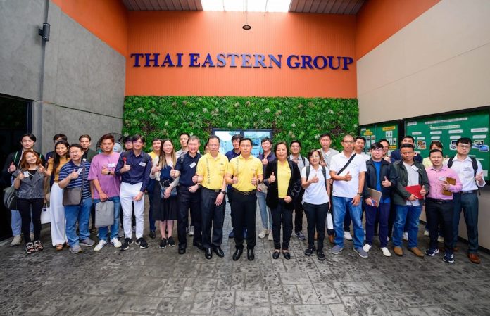 คุณเฉลิม โกกนุทาภรณ์ ประธานเจ้าหน้าที่บริหาร และคณะผู้บริหาร บริษัท ไทยอีสเทิร์น กรุ๊ป โฮลดิ้งส์ จำกัด (มหาชน) (TEGH) ถ่ายภาพร่วมกัน เนื่องในโอกาสเปิดบ้านต้อนรับนักลงทุนเยี่ยมชมสถานประกอบการ พร้อมเปิดแผนธุรกิจของปี 2567 โชว์ศักยภาพเติบโตทุกสายธุรกิจ ทั้งยางธรรมชาติ น้ำมันปาล์ม และพลังงานทดแทน บนพื้นฐานความมุ่งมั่นการทำธุรกิจที่เป็นมิตรต่อสิ่งแวดล้อม สอดรับกับแนวทางการบริหารจัดการที่ครอบคลุมทุกมิติ E S G เน้นการเติบโตในรูปแบบ Sustainability to Profitability พร้อมเผยโอกาสสร้างรายได้จากสินค้ามาตรฐาน EUDR ซึ่งงานดังกล่าว จัดขึ้นที่บริษัทฯ เมื่อเร็วๆ นี้