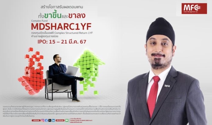 นายธนโชติ รุ่งสิทธิวัฒน์ กรรมการผู้จัดการ บริษัทหลักทรัพย์จัดการกองทุน เอ็มเอฟซี จำกัด (มหาชน) หรือ MFC ในฐานะผู้เชี่ยวชาญด้านการบริหารจัดการกองทุนคุณภาพทั้งในและต่างประเทศ เปิดเผยว่า บลจ. เอ็มเอฟซี มองแนวโน้มการลงทุนตลาดหุ้นทั่วโลกยังมีความผันผวน จึงนำเสนอ “กองทุนเปิดเอ็มเอฟซี Complex Structured Return 1YF ห้ามขายผู้ลงทุนรายย่อย” หรือ MDSHARC1YF มีกลยุทธ์ลดความเสี่ยงการขาดทุนของเงินต้น โดยเลือกลงทุนในตราสารหนี้ และ/หรือเงินฝากที่มีอันดับความน่าเชื่อถืออยู่ในอันดับInvestment Grade โดยมีเป้าหมายเพื่อให้เงินลงทุนเติบโตเป็นร้อยละ 100 ของเงินลงทุนทั้งหมด พร้อมรับผลตอบแทน 0.25% ต่อปีและมีการลงทุนในตราสารอนุพันธ์ เพื่อโอกาสในการสร้างผลตอบแทนส่วนเพิ่มจากตลาดขาขึ้นและขาลงตามการเคลื่อนไหวของดัชนีอ้างอิง Nikkei 225 (NKY) ตามกลยุทธ์แบบ Dual Shark Fin เพื่อเป็นอีกทางเลือกให้แก่นักลงทุนอย่างต่อเนื่อง กำหนดเสนอขายกองทุนครั้งเดียว (IPO) ระหว่างวันที่ 15-21 มีนาคม 2567 นี้  เงินลงทุน 500,000 บาท