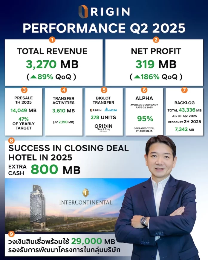 ออริจิ้น พร็อพเพอร์ตี้ เผยผลประกอบการไตรมาส 2 ปี 2568 กวาดรายได้จากการโอนกรรมสิทธิ์ทั้งสิ้นกว่า