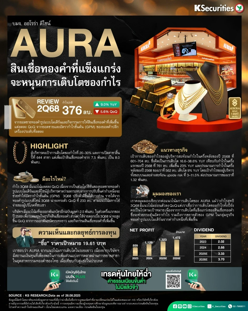 KS: AURA สินเชื่อทองคำที่แข็งแกร่งจะหนุนการเติบโตของกำไร