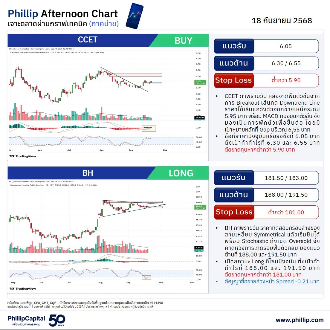หุ้นแนะนำบ่ายนี้ CCET, BH (Long)