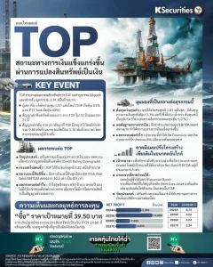 TOP สถานะทางการเงินแข็งแกร่งขึ้น ผ่านการแปลงสินทรัพย์เป็นเงิน เราคงคำแนะนำ “ซื้อ” และปรับเพิ่ม TP จากประโยชน์ของการแปลงสินทรัพย์เป็นเงิน กำไร 2H68 ที่แข็งแกร่งขึ้น และมูลค่าหุ้นที่ถูกเป็นอันดับสองในกลุ่ม…