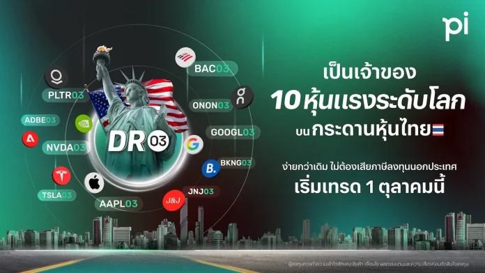 ซึ่ง Pi DR03 เป็นนวัตกรรมที่เปิดโลกการลงทุนไร้พรมแดนให้กับนักลงทุนไทย โดยสามารถเป็นเจ้าของหุ้นบริษัทชั้นนำระดับโลกได้อย่างง่ายดาย ผ่านบัญชีหุ้นไทยด้วยสกุลเงินบาท ไม่ต้องเปิดบัญชีต่างประเทศ ไม่เสียภาษีลงทุนต่างประเทศ และไม่ต้องกังวลเรื่องความผันผวนของอัตราแลกเปลี่ยน ซึ่งจะช่วยลดอุปสรรคและเพิ่มความสะดวกสบายในการลงทุนระหว่างประเทศอย่างมีนัยสำคัญ”