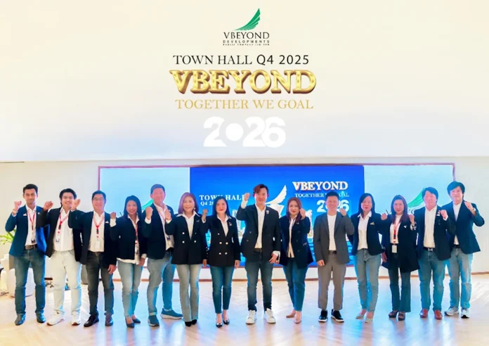 เข้าช่วงไตรมาสสุดท้ายของปี ทุกธุรกิจต่างเร่งผลประกอบการให้เป็นไปตามเป้าหมาย เพื่อขับเคลื่อนองค์กรสู่ความสำเร็จ บริษัท วีบียอนด์ ดีเวลอปเม้นท์ จำกัด (มหาชน) นำโดย ดร.วรเดช รุกขพันธุ์ ประธานเจ้าหน้าที่บริหาร นำทีมผู้บริหารและพนักงาน จัดงาน VBEYOND : Together We Goal 2026 แถลงแผนการดำเนินงานไตรมาส4 พร้อมประกาศนโยบายและแผนการขยายธุรกิจในปี 2026 ณ The Empire Residence ชั้น 53 อาคารเอ็มไพร์ทาวเวอร์ เมื่อวันพุธที่ 1 ตุลาคม 2568 ที่ผ่านมา