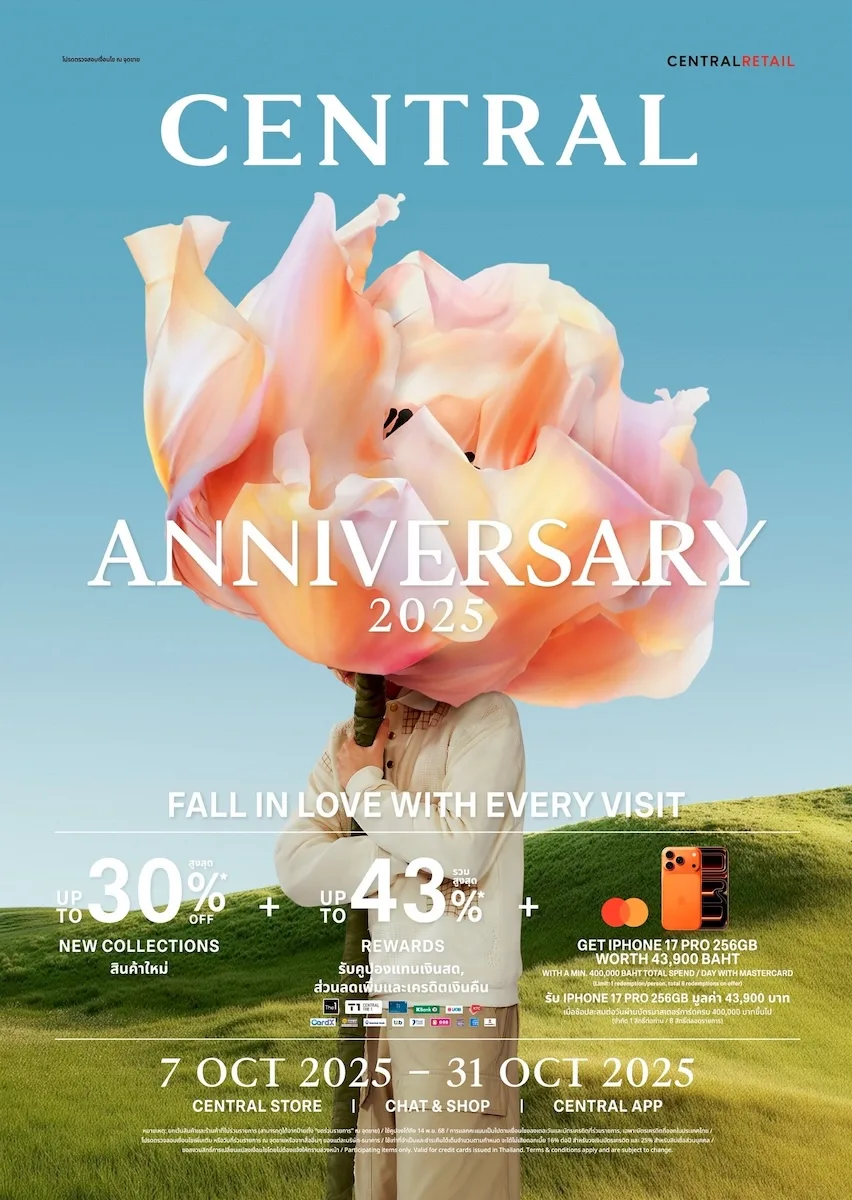 ตกหลุมรักทุกครั้งที่มา ห้างเซ็นทรัล ในเครือเซ็นทรัล รีเทล คิกออฟบิ๊กแคมเปญใหญ่แห่งปี “Central Anniversary 2025” จัดเต็มโปรโมชันสุดเอ็กซ์คลูซีฟตลอดเดือนตุลาคม 2568 พร้อมรับ iPhone 17 Pro และอื่นๆ อีกมากมาย