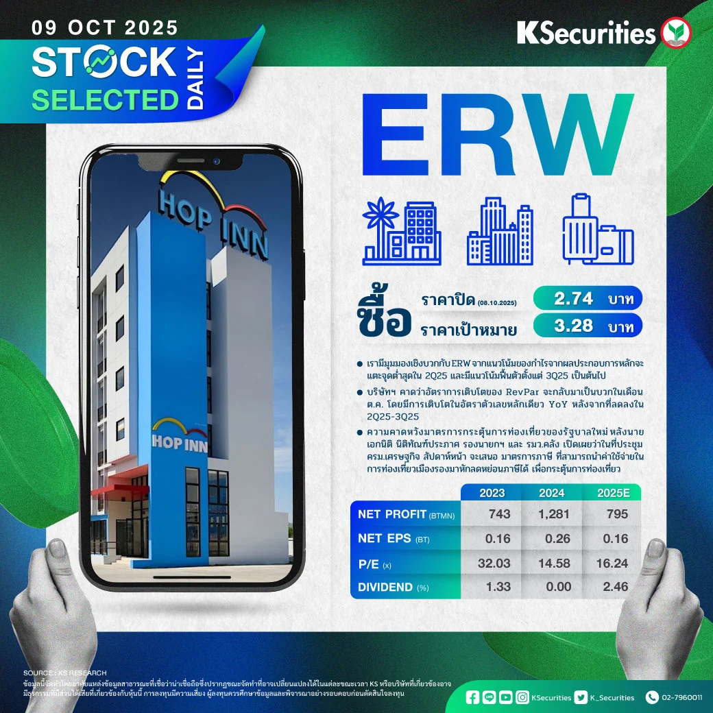 • เรามีมุมมองเชิงบวกกับ ERW จากแนวโน้มของกำไรจากผลประกอบการหลักจะแตะจุดต่ำสุดใน 2Q25 และมีแนวโน้มฟื้นตัวตั้งแต่ 3Q25 เป็นต้นไป