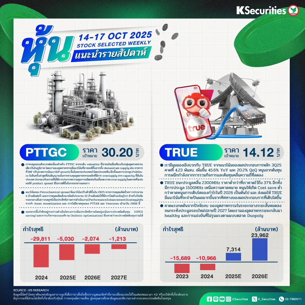 • เรามีมุมมองเชิงบวกกับ TRUE จากแนวโน้มของผลประกอบการหลัก 3Q25 คาดที่ 4.23 พันลบ. เพิ่มขึ้น 45.6% YoY และ 20.2% QoQ หนุนจากต้นทุนการผนึกกำลังจากการรวมกิจการและต้นทุนคลื่นความถี่ที่ลดลง