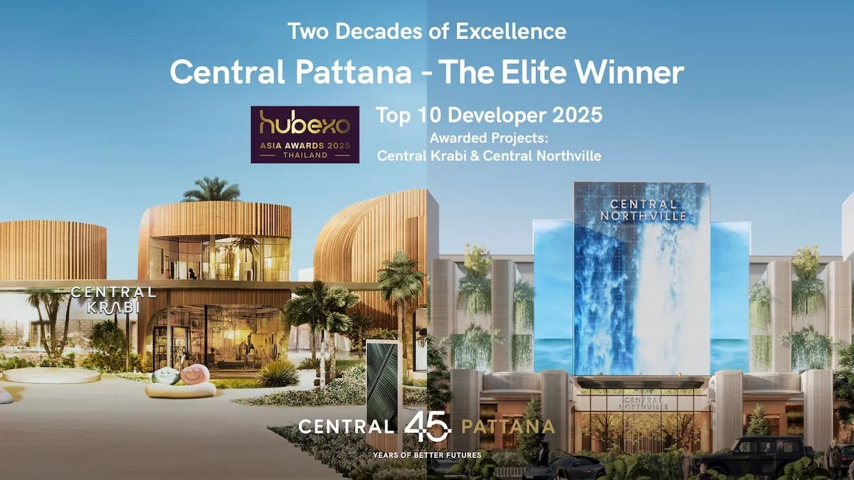 บริษัท เซ็นทรัลพัฒนา จำกัด (มหาชน) ผู้นำเบอร์หนึ่งอสังหาริมทรัพย์ไทยเพื่อความยั่งยืน ภายใต้วิสัยทัศน์ Imagining better futures for all เชื่อมโยงทุกธุรกิจทั้ง Retail-Residence-Hotel-Office ตอกย้ำความสำเร็จตลอด 45 ปี ในบทบาท Thailand No.1 Real estate developer คว้า 2 รางวัลใหญ่ระดับเอเชีย Hubexo Asia Awards 2025 เวทีอันทรงเกียรติที่ได้รับการยอมรับสูงสุดในวงการสถาปัตยกรรมและการก่อสร้างระดับภูมิภาค นำโดยรางวัลพิเศษ Elite Winner สะท้อนความเป็นเลิศขององค์กรที่พัฒนาทุกโครงการกลายเป็นแลนด์มาร์กสำคัญของเมือง พร้อมรางวัล Top 10 Developers 2025 ด้วยผลงานพัฒนา 2 โครงการมิกซ์ยูส “เซ็นทรัล กระบี่” และ “เซ็นทรัล นอร์ทวิลล์” สะท้อนความมุ่งมั่นในการพัฒนาศูนย์การค้าเป็น Heart of the City ที่เติบโตเคียงข้างผู้คนและชุมชนทั่วประเทศ