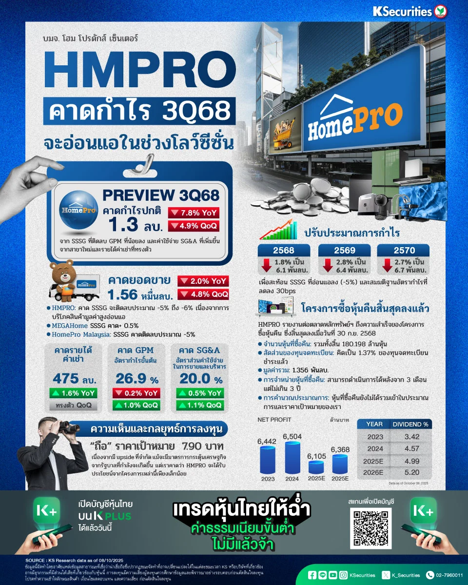 HMPRO คาดกำไร 3Q68 จะอ่อนแอในช่วงโลว์ซีซั่น