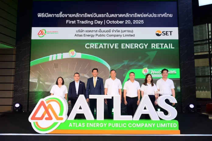 บริษัท แอตลาส เอ็นเนอยี จำกัด (มหาชน) (ATLAS) เข้าซื้อขายในตลาดหลักทรัพย์แห่งประเทศไทย (SET) เป็นวันแรก เมื่อวันที่ 20 ตุลาคม 2568 ในหมวดพลังงานและสาธารณูปโภค ที่ราคา IPO 3 บาทต่อหุ้น สะท้อนความเชื่อมั่นต่อพื้นฐานธุรกิจและศักยภาพการเติบโตในอนาคต