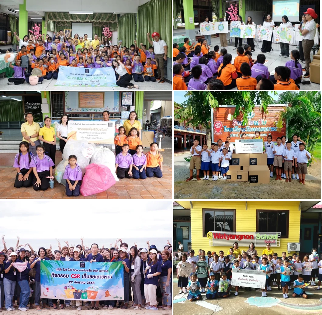 ด้านสิ่งแวดล้อม บริษัทฯ ดำเนินโครงการ “Give Back to Earth: ช่วยโลก รักษ์สิ่งแวดล้อม” ผ่านกิจกรรมแลกเปลี่ยนขวดพลาสติกกับอุปกรณ์การเรียนให้กับเด็กนักเรียนและชุมชนใกล้เคียง พร้อมถ่ายทอดความรู้ เรื่องการคัดแยกขยะ การลดการใช้พลาสติก และกระบวนการรีไซเคิล โดยขวดพลาสติกที่รวบรวมได้จะส่งต่อให้หน่วยงานเชี่ยวชาญ เช่น วัดจากแดง เพื่อนำไปผลิตเป็นผ้าไตรจีวรต่อไป ด้านการช่วยเหลือสังคม บริษัทฯ ดำเนินโครงการ “Give a Hand: รวมใจ ฟื้นฟูผู้ประสบภัย“ ด้วยการจัดตั้งกองทุนสำรองพร้อมทีมปฏิบัติการเพื่อให้ความช่วยเหลือผู้ประสบภัยพิบัติได้อย่างรวดเร็วและมีประสิทธิภาพ ขณะเดียวกันยังมุ่งพัฒนาเยาวชนผ่านโครงการ “Give a Future: สานฝัน สู่อนาคต“ ด้วยการมอบทุนการศึกษาแก่บุตรพนักงาน พร้อมโครงการ “สมุดทำความดี” ที่ปลูกฝังคุณธรรมควบคู่ความรู้ โดยตั้งเป้าหมายให้นักเรียนทุนบันทึกกิจกรรมทำความดีร้อยละ 80, 90 และ 100 ในระยะสั้น กลาง และยาว ตามลำดับ นอกจากนี้ยังสนับสนุนทุนการแข่งขันทางวิชาการและจัดกิจกรรมถ่ายทอดความรู้แก่นักเรียนนักศึกษาอย่างต่อเนื่อง