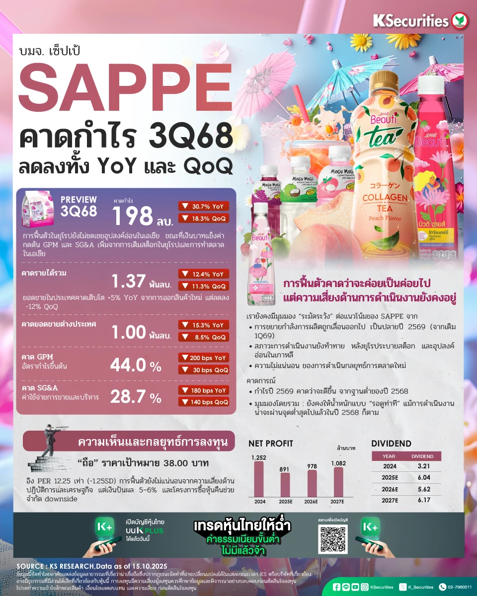 SAPPE คาดกำไรไตรมาส 3/2568 ลดลงทั้ง YoY และ QoQ