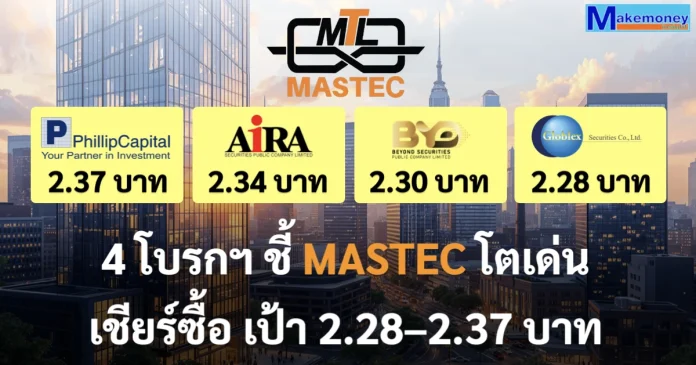 4 โบรกฯ ชี้ MASTEC โตเด่น หนุนสินค้านวัตกรรม–อนุรักษ์พลังงาน แนะนำซื้อ ราคาพื้นฐาน 2.28–2.37 บาท