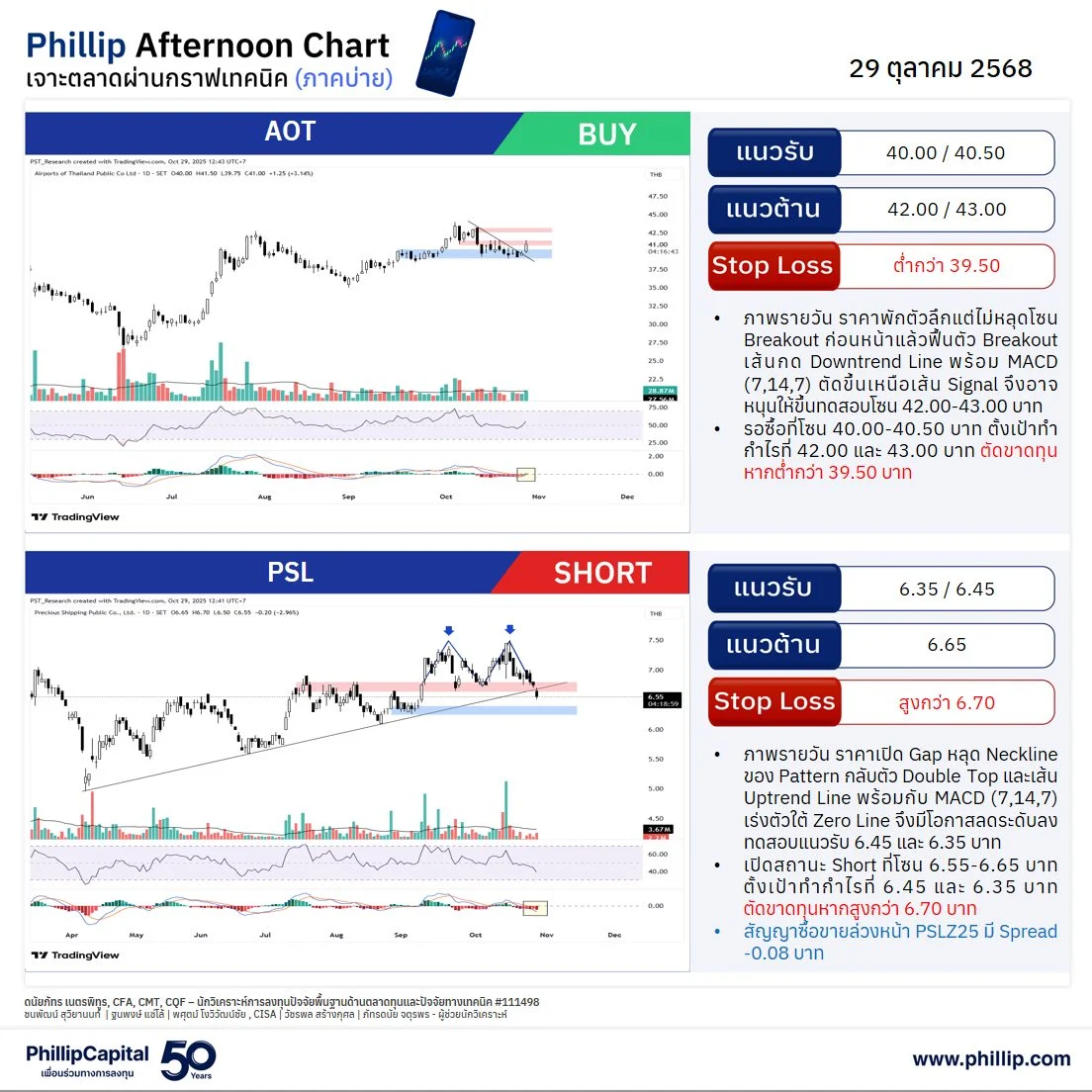 หุ้นแนะนำบ่ายนี้ AOT, PSL (Short)