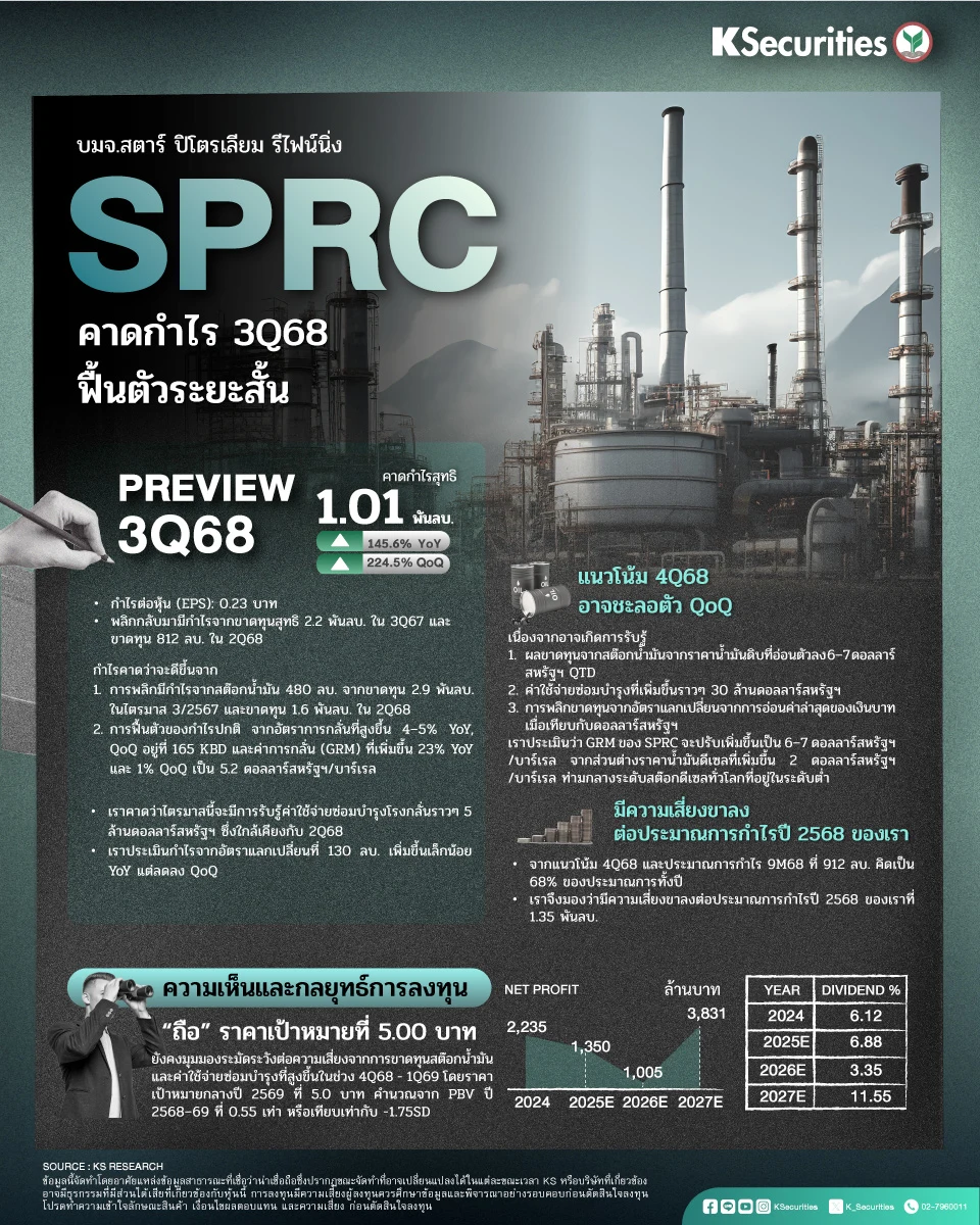 SPRC คาดกำไร 3Q68 ฟื้นตัวระยะสั้น