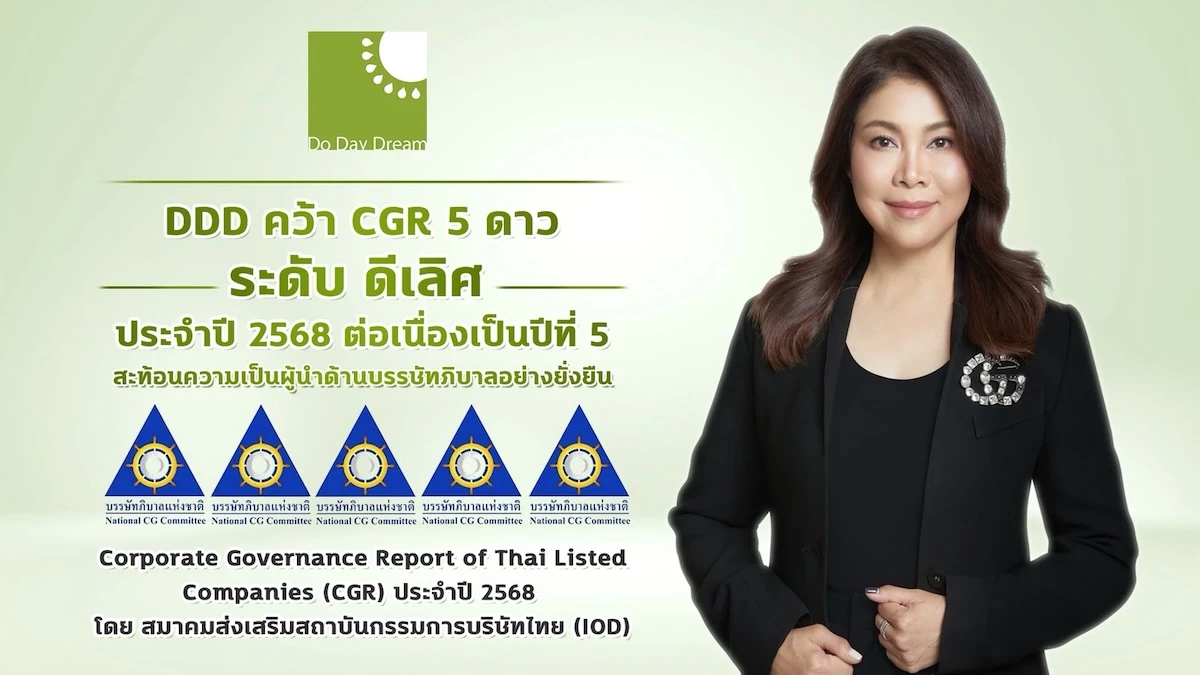 DDD คว้า CGR 5 ดาว ระดับ “ดีเลิศ” ประจำปี 2568 ต่อเนื่องเป็นปีที่ 5 สะท้อนความเป็นผู้นำด้านบรรษัทภิบาลอย่างยั่งยืน
