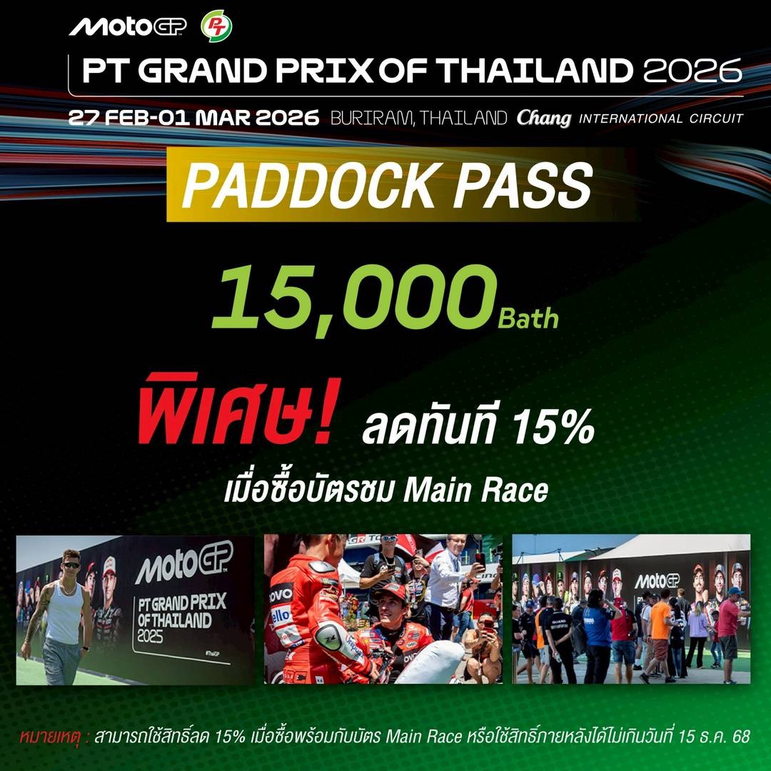 เคาะแล้ว บัตร 𝗧𝗵𝗮𝗶𝗚𝗣 𝟮𝟬𝟮𝟲 สนามแรกฤดูกาล ‘ตรึงราคาเดิม’ พร้อมสิทธิประโยชน์ แบบ ‘𝟯-𝗶𝗻-𝟭’ และส่วนลดสุดคุ้ม สนามเดียวในโลก!