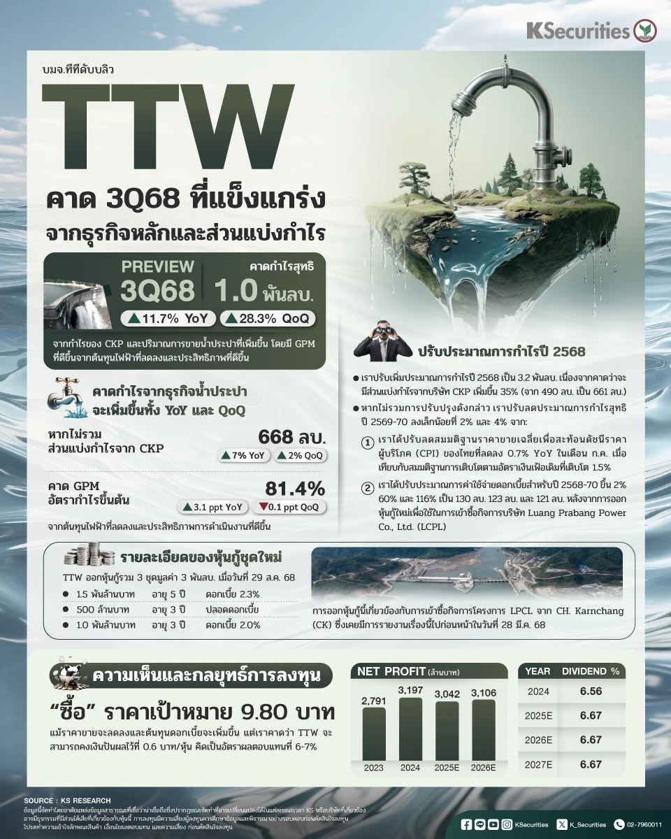 TTW คาด 3Q68 ที่แข็งแกร่งจากธุรกิจหลักและส่วนแบ่งกำไร