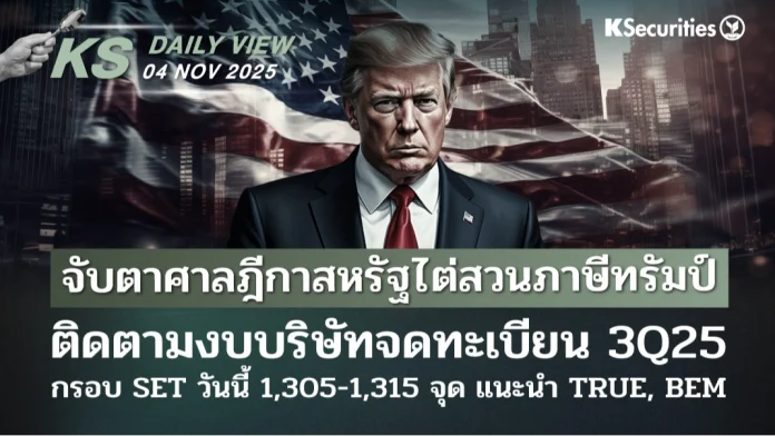 KS Daily View 04.11.2025 >>> จับตาศาลฎีกาสหรัฐไต่สวนภาษีทรัมป์ ติดตามงบบริษัทจดทะเบียน 3Q25 กรอบ SET วันนี้ 1,305-1,315 จุด แนะนำ TRUE, BEM