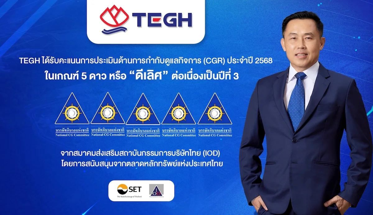 TEGH โดดเด่น!ความเป็นเลิศธรรมาภิบาล คว้า CGR ระดับ 5 ดาว ติดต่อกัน 3 ปี