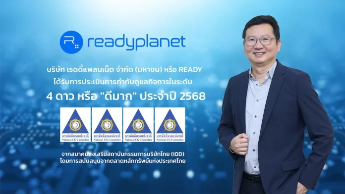 บริษัท เรดดี้แพลนเน็ต จำกัด (มหาชน) หรือ READY ผู้ประกอบธุรกิจให้บริการแพลตฟอร์มการขายและการตลาดดิจิทัลแบบรวมเป็นหนึ่งเดียว (All-in-One Sales and Marketing Platform) และระบบจองโรงแรมโดยตรง (Hotel Direct Booking) นำโดย นายทรงยศ คันธมานนท์ ประธานเจ้าหน้าที่บริหาร กล่าวว่า READY มีความยินดีเป็นอย่างยิ่ง ที่ได้รับการประเมินการกำกับดูแลกิจการบริษัทจดทะเบียน ประจำปี 2568 ในโครงการสำรวจการกำกับดูแลกิจการของบริษัทจดทะเบียนไทย (Corporate Governance Report of Thai Listed Companies 2025: CGR) ในระดับ “ดีมาก” (Very Good) หรือ 4 ดาว จากสมาคมส่งเสริมสถาบันกรรมการบริษัทไทย (IOD) โดยการสนับสนุนของตลาดหลักทรัพย์แห่งประเทศไทย และสำนักงานคณะกรรมการกำกับหลักทรัพย์และตลาดหลักทรัพย์ (ก.ล.ต.)
