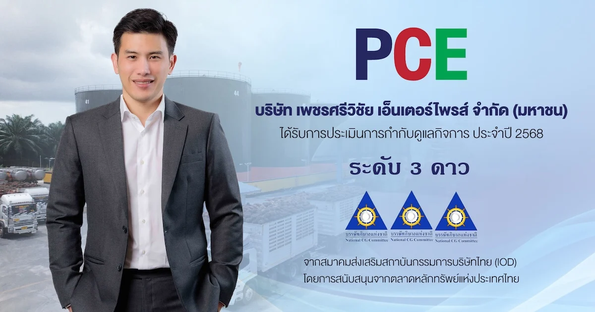 บริษัท เพชรศรีวิชัย เอ็นเตอร์ไพรส์ จำกัด (มหาชน) (PCE) ผู้นำอุตสาหกรรมน้ำมันปาล์มแบบครบวงจร ได้รับการประเมิน การกำกับดูแลกิจการ (CGR) ประจำปี 2568 ระดับ 3 ดาว จาก สมาคมส่งเสริมสถาบันกรรมการบริษัทไทย (IOD) โดยมี ตลาดหลักทรัพย์แห่งประเทศไทย (ตลท.) ให้การสนับสนุน โดย PCE ให้ความสำคัญกับการบริหารจัดการองค์กรตามหลักธรรมาภิบาล ด้วยความโปร่งใส ตรวจสอบได้ และคำนึงถึงผู้มีส่วนได้ส่วนเสียทุกกลุ่ม อีกทั้งยังผนวกแนวทางด้าน สิ่งแวดล้อม สังคม และธรรมาภิบาล (ESG) เข้ากับกลยุทธ์การดำเนินงานอย่างเป็นระบบ เพื่อสร้างความเชื่อมั่นแก่นักลงทุนและสนับสนุนการเติบโตอย่างยั่งยืนขององค์กรและชุมชนโดยรอบ