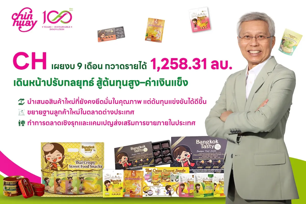 CH เผยผลประกอบการงวด 9 เดือน ปี 68 กวาดรายได้รวม 1,258.31 ล้านบาท กำไรสุทธิ 5.46 ล้านบาท ปรับกลยุทธ์เชิงรุก สู้ต้นทุนสูง–ค่าเงินแข็ง ด้านตลาดในประเทศโตแรง แบรนด์ “Bangkok Tasty by Chin Huay” และ “Eros” ทำยอดขาย New High กระแสตอบรับดีทั้งออนไลน์ และออฟไลน์