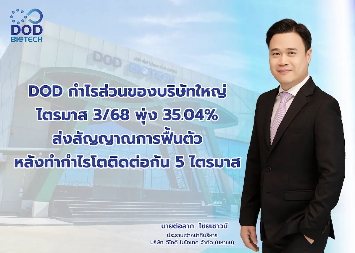 DOD กำไรส่วนของบริษัทใหญ่ ไตรมาส 3/68 พุ่ง 35.04% ส่งสัญญาณการฟื้นตัว หลังทำกำไรโตติดต่อกัน 5 ไตรมาส