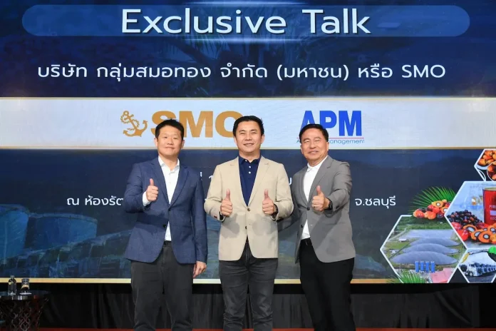 นายกิตติพงษ์ พวงมาลา ประธานเจ้าหน้าที่บริหาร บริษัท กลุ่มสมอทอง จำกัด (มหาชน) หรือ SMO พร้อมด้วยดร.สมภพ ศักดิ์พันธ์พนม ประธานกรรมการ นายสุริยา ธรรมธีระ รองกรรมการผู้จัดการ บริษัท แอสเซท โปร แมเนจเม้นท์ จำกัด (APM) ในฐานะที่ปรึกษาทางการเงิน ร่วมนำเสนอข้อมูลธุรกิจและทิศทางการเติบโตของบริษัท แก่นักลงทุนจังหวัดชลบุรี ในงานสัมมนา “Exclusive Talk” โดยบริษัทมีภาพรวมการดำเนินงาน 9 เดือน ปี 68 บริษัทมีรายได้รวม 7,180.58 ล้านบาท ปรับตัวเพิ่มสูงขึ้น 2,365.81 ล้านบาท หรือคิดเป็นเพิ่มขึ้น 49.14% เมื่อเทียบกับช่วงเดียวกันปีก่อนที่มีรายได้ 4,814.77 ล้านบาทและมีกำไรสุทธิอยู่ที่ 652.07 ล้านบาท ปรับตัวเพิ่มสูงขึ้น 346.50 ล้านบาท หรือคิดเป็นเพิ่มขึ้น 113.39% YoY เมื่อเทียบกับช่วงเดียวกันปี 67 ที่มีกำไรสุทธิ 305.57 ล้านบาท ทั้งนี้บริษัทประกาศจ่ายปันผลระหว่างกาลเป็นเงินสดในอัตราหุ้นละ 0.15 บาท โดยจ่ายจากกำไรสุทธิ ส่วนที่ได้รับการส่งเสริมการลงทุน หรือ BOI กำหนดวันที่ไม่ได้รับสิทธิปันผล (XD) ในวันที่ 25 พ.ย. 2568 และจ่ายปันผลในวันที่ 11 ธันวาคม 2568 ในขณะเดียวกันบริษัทยังได้นำเงินระดมทุน ลงทุน 960 ลบ. สร้างโรงงานใหม่ในจ.นครศรีธรรมราช เพื่อรองรับความต้องการน้ำมันปาล์มดิบในตลาดโลก อัพกำลังผลิตน้ำมันปาล์มดิบเป็น 390 ตัน ณ ห้องรัตนแกรนด์ บอลรูม ชั้น 12 โรงแรมรัตนชล จ.ชลบุรี