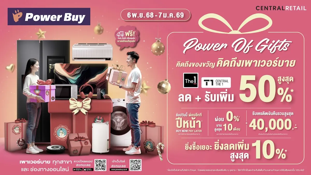 เพาเวอร์บาย ร่วมมอบความสุขตลอดเทศกาลปีใหม่นี้ด้วยแคมเปญ “Power of Gift” ยกระดับประสบการณ์ช้อปปิ้งที่สะดวกสบายและครบทุกความต้องการ ผ่านทุกช่องทาง Omnichannel ลูกค้าสามารถเลือกสรรของขวัญสุดพิเศษ ตั้งแต่วันนี้ – 7 มกราคม 2569 ที่เพาเวอร์บายทุกสาขาทั่วประเทศ รวมถึงช่องทางออนไลน์ครบวงจร ไม่ว่าจะเป็นเว็บไซต์ www.powerbuy.co.th, แอป Power Buy, Call & Shop 1324 กด 2, Line @powerbuy และ Facebook Official