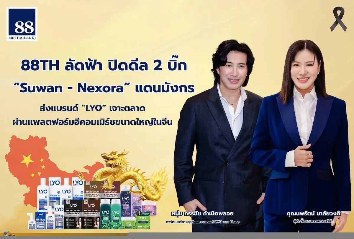88TH ลัดฟ้า ปิดดีล 2 บิ๊ก “Suwan – Nexora” แดนมังกร ส่งแบรนด์ “LYO” เจาะตลาด ผ่านแพลตฟอร์มอีคอมเมิร์ซขนาดใหญ่ในจีน