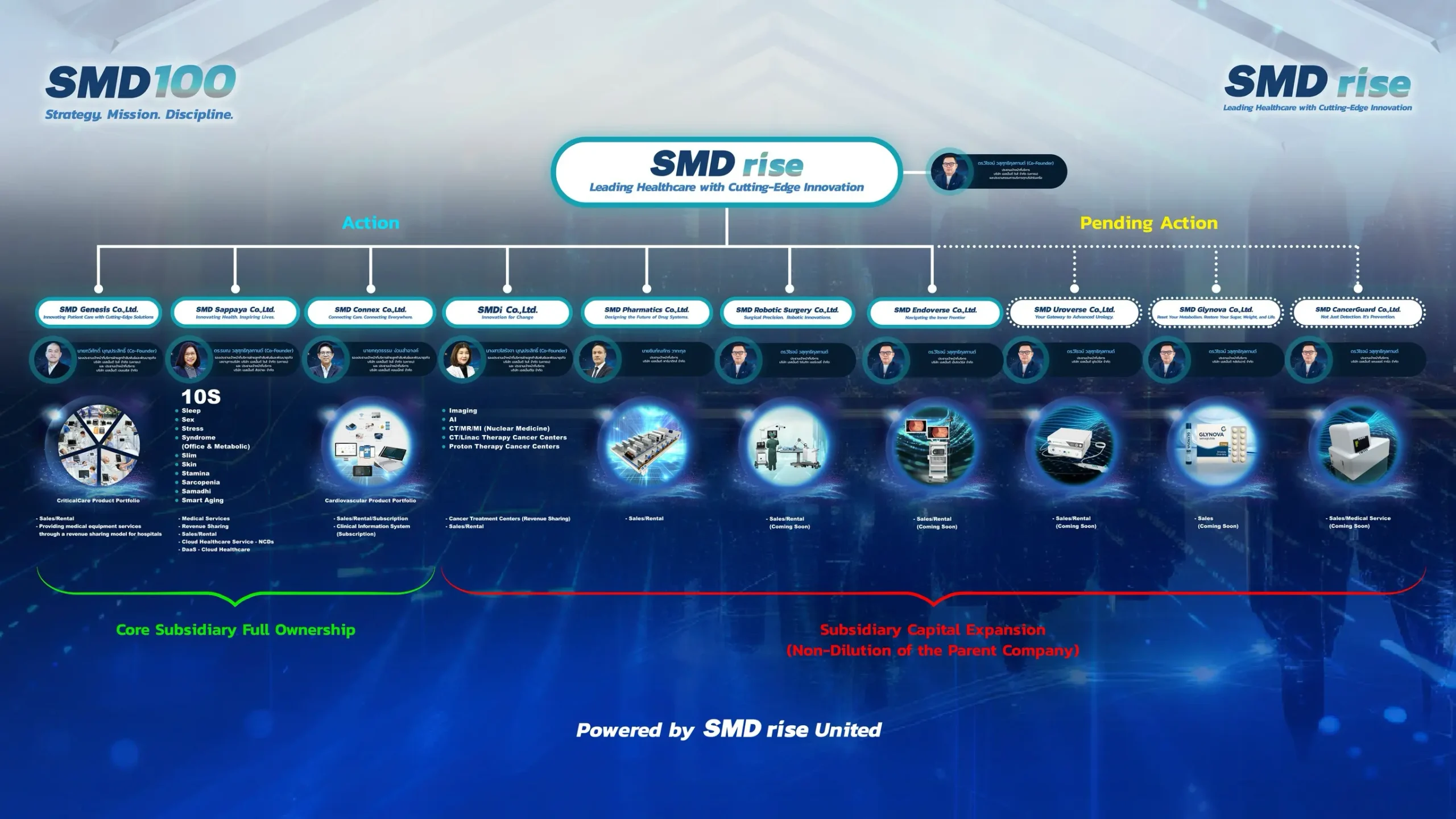 เพื่อคงเสถียรภาพเชิงยุทธศาสตร์ SMD rise ได้กำหนดให้โครงสร้าง Core Stability Layer เป็นบริษัทลูกที่บริษัทแม่ถือหุ้น 100% ได้แก่