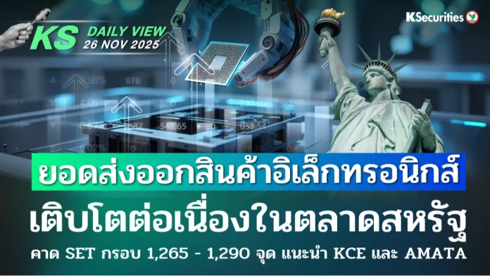 KS Daily View 26.11.2025 >>> ยอดส่งออกสินค้าอิเล็กทรอนิกส์ เติบโตต่อเนื่องในตลาดสหรัฐ คาด SET กรอบ 1,265 – 1,290 จุด แนะนำ KCE และ AMATA