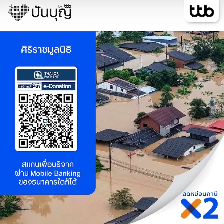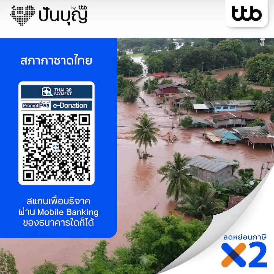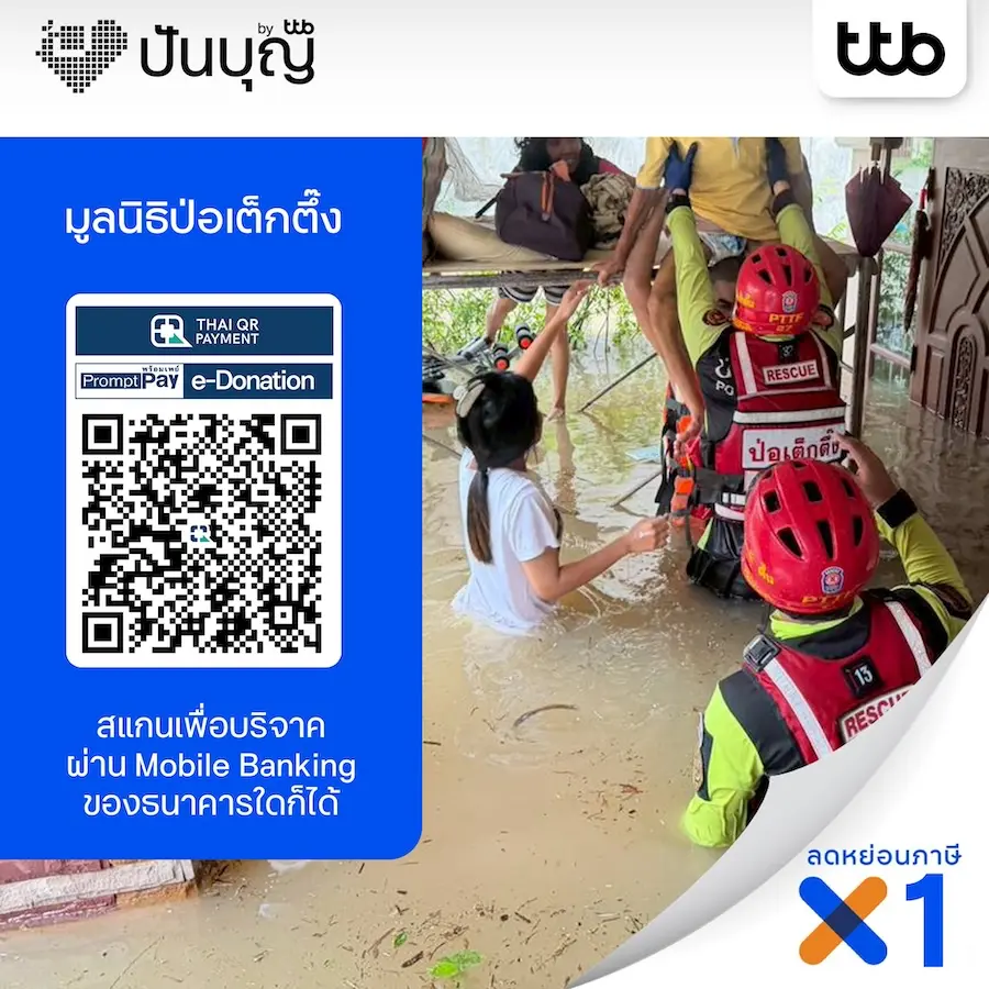ทีทีบี สานพลังน้ำใจส่งต่อช่วยผู้ประสบภัยน้ำท่วมภาคใต้ ให้กับมูลนิธิต่างๆ ผ่านแพลตฟอร์ม “ปันบุญ” พร้อมสิทธิ์ลดหย่อนภาษีสูงสุด 2 เท่า