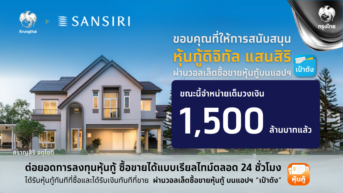 นายรวินทร์ บุญญานุสาสน์ ผู้บริหารสายงานธุรกิจตลาดเงินตลาดทุน ธนาคารกรุงไทย เปิดเผยว่า ความสำเร็จในการเสนอขายหุ้นกู้ดิจิทัลแสนสิริ บนแอปพลิเคชัน “เป๋าตัง” ครั้งนี้ สะท้อนถึงความเชื่อมั่นของผู้ลงทุนที่มีต่อธุรกิจของแสนสิริ ซึ่งเป็นผู้นำอสังหาริมทรัพย์ของไทย และตอกย้ำถึงประสิทธิภาพของระบบ “เป๋าตัง” ซึ่งเป็นช่องทางดิจิทัลที่ประชาชนคุ้นเคยและมีผู้ใช้งานกว่า 40 ล้านคน โดยหุ้นกู้ดิจิทัลบนแอปฯ เป๋าตัง ช่วยอำนวยความสะดวกให้ผู้ลงทุนทุกกลุ่มสามารถเข้าถึงสินทรัพย์คุณภาพได้อย่างทั่วถึง เท่าเทียม ปลอดภัย และโปร่งใส สามารถซื้อขายได้แบบเรียลไทม์ตลอด 24 ชั่วโมง ได้รับหุ้นกู้ทันทีที่ซื้อและได้รับเงินทันทีที่ขาย แสดงข้อมูลการถือครองหุ้นกู้ ราคาซื้อขาย ครบจบในที่เดียว ตอบโจทย์ผู้ลงทุนยุคใหม่อย่างแท้จริง