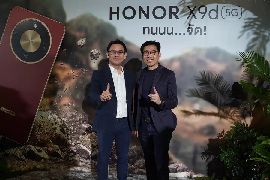 บริษัท ซินเน็ค (ประเทศไทย) จำกัด (มหาชน) หรือ SYNNEX ผู้นำด้านการจัดจำหน่ายสินค้าไอทีและเทคโนโลยีครบวงจร นำโดย คุณปัญญา พูนเพิ่มผลสิริ ประธานเจ้าหน้าที่ฝ่ายขายและการตลาด พร้อมด้วยคุณสุทธิพงศ์ จันทร์ภักดี ผู้อำนวยการฝ่าย IT ได้ร่วมงานเปิดตัว HONOR X9d5G ภายใต้สโลแกน “ทนนน…จัด!” โดยสมาร์ตโฟนรุ่นนี้สร้างมาตรฐานใหม่ให้เป็นสมาร์ตโฟนระดับกลางที่ทรงพลังที่สุดในตลาด โดดเด่นด้วยโครงสร้างสุดแข็งแกร่ง รองรับการตกกระแทกสูงสุด 2.5 เมตร พร้อมผ่านมาตรฐานกันน้ำ กันฝุ่นระดับสูงสุดครอบคลุมทั้ง IP69K, IP69, IP68 และ IP66 ผสานสมรรถนะด้านการใช้งานเหนือชั้นด้วยแบตเตอรี่ขนาด 8,300mAh ซึ่งเป็นความจุที่ใหญ่ที่สุดในตลาดสมาร์ตโฟนปัจจุบัน มาพร้อมกล้อง AI Camera อัจฉริยะ ความละเอียด 108MP เสริมด้วยระบบกันสั่นคู่ OIS + EIS ช่วยให้ผู้ใช้เก็บภาพได้คมชัดทุกสภาพแสง ด้วยการออกแบบที่ตอบโจทย์ทุกความต้องการของผู้ใช้รุ่นใหม่ ทั้งความทนทาน ประสิทธิภาพ เปิดตัวพร้อม 3 เฉดสีพรีเมียม ได้แก่ Reddish Brown, Sunrise Gold และ Midnight Black ในราคาเพียง 11,990 บาท พร้อมข้อเสนอมากมาย เริ่มวางจำหน่ายตั้งแต่วันที่ 4 ธันวาคม 2568 เป็นต้นไป