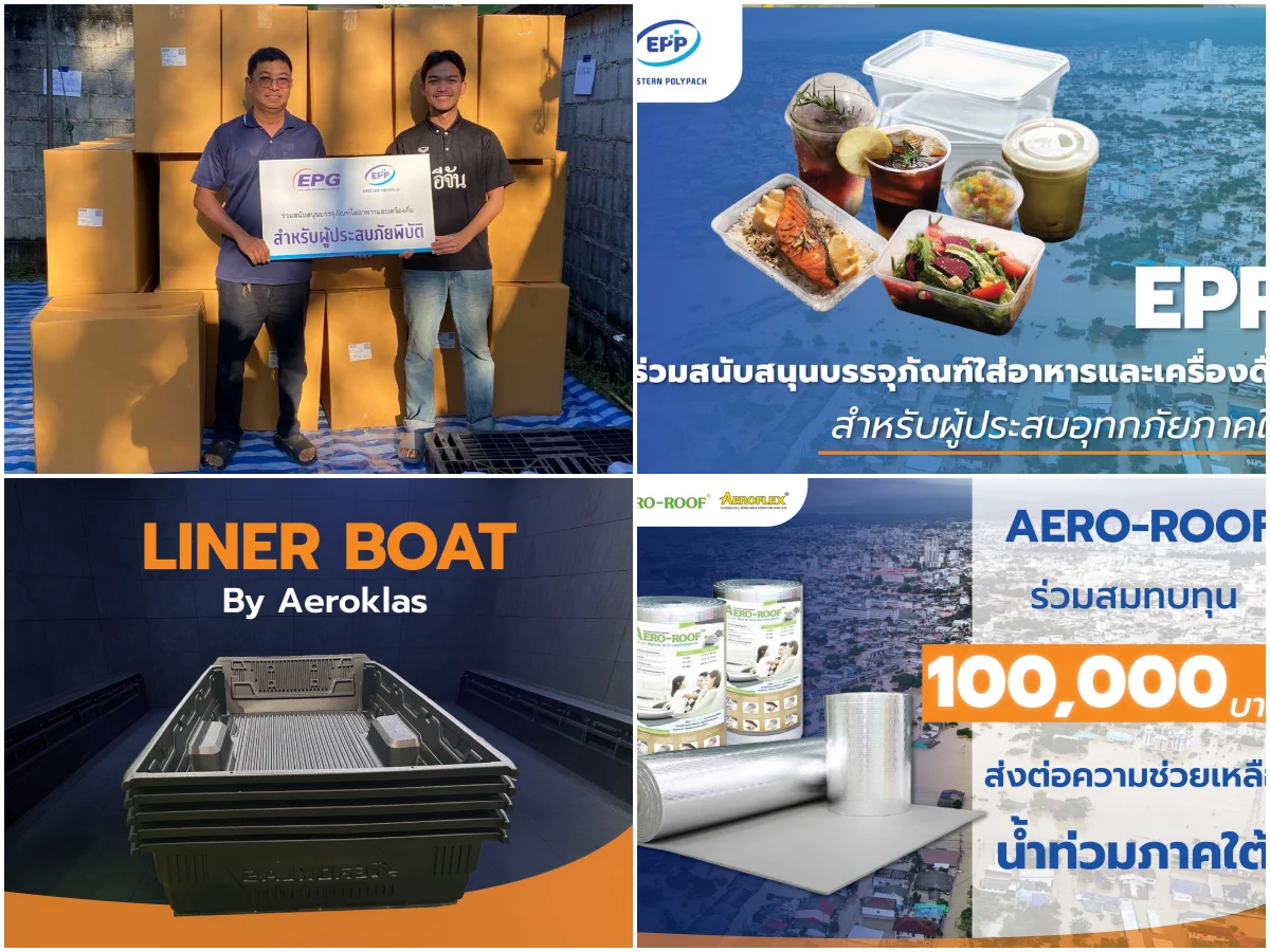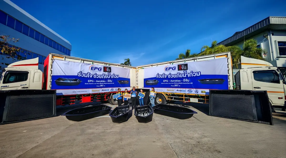 EPG ได้สนับสนุนงบประมาณสำหรับการผลิต“Aeroklas Boat และ Liner Boat” ให้แก่ Aeroklas โดย Aeroklas ได้ใช้ความเชี่ยวชาญด้านการผลิตชิ้นส่วนและอุปกรณ์ตกแต่งยานยนต์จากวัสดุโพลีเมอร์มาพัฒนาเป็น “Aeroklas Boat และ Liner Boat” โดยเมื่อวันที่ 29 พฤศจิกายน 2568 Aeroklas ได้ส่งมอบ“Aeroklas Boat และ Liner Boat” รวมทั้งสิ้น 267 ลำเพื่อนำไปใช้ลากจูงเคลื่อนย้ายสิ่งของจำเป็นในพื้นที่ที่ถูกน้ำท่วมอีกทั้งพนักงานได้ร่วมกันบริจาคน้ำดื่มและสิ่งของจำเป็นเพื่อส่งเสริมการช่วยเหลือในภาคสนามอย่างต่อเนื่อง