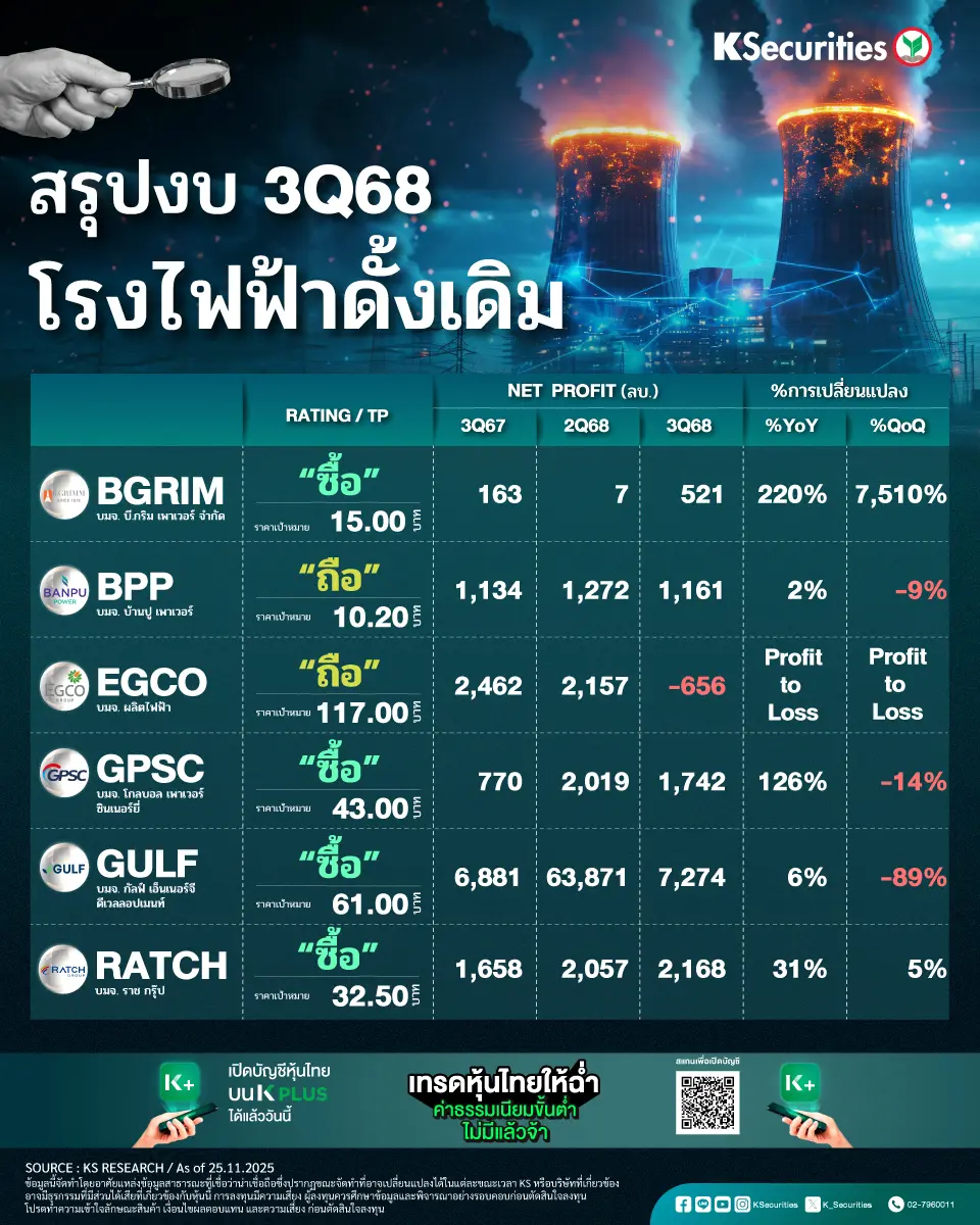 สรุปงบ 3Q68 โรงไฟฟ้าดั้งเดิม