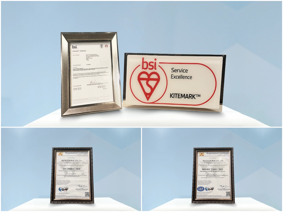 การได้รับมาตรฐานทั้ง 3 ฉบับนี้ ไม่ใช่เพียง ‘การผ่านเกณฑ์’ แต่เป็นการยืนยันว่า SKY ICT มีระบบบริหารจัดการข้อมูล กระบวนการบริการ และคุณภาพการดูแลลูกค้าในระดับที่สอดคล้องกับมาตรฐานสากลสูงสุด ซึ่งมาตรฐานทั้งสามประกอบด้วย ISO/IEC 27001:2022 ระบบบริหารความมั่นคงปลอดภัยสารสนเทศ, ISO/IEC 20000-1:2018 ระบบบริหารจัดการบริการไอที, ISO 23592:2021 พร้อม BSI Kitemark™ มาตรฐานความเป็นเลิศด้านการบริการ พร้อมแนวทางจัดการข้อร้องเรียน (ISO 10002:2018) และแนวปฏิบัติด้านการให้บริการ (BS 8477:2014) นี่คือก้าวสำคัญในการยกระดับองค์กรให้พร้อมแข่งขันในตลาดเทคโนโลยีระดับภูมิภาค และสร้างความเชื่อมั่นระยะยาวต่อหน่วยงานรัฐ สายการบิน คู่ค้า และผู้โดยสาร