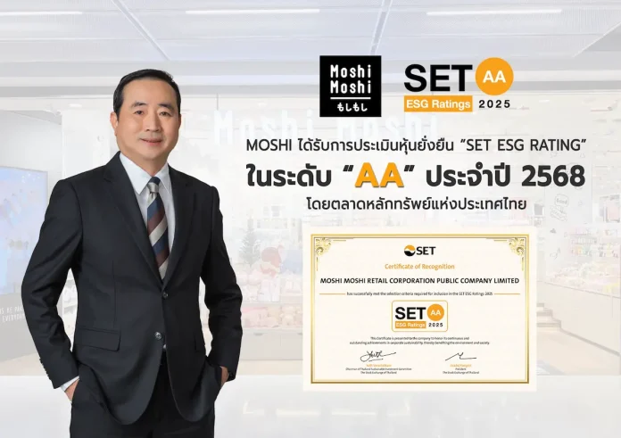 MOSHI คว้าหุ้นยั่งยืน SET ESG Ratings ปี 2568 ระดับ “AA” ชูแนวคิด ‘Make Sustainability part of Your Everyday Life’ สร้างการเติบโตควบคู่ความรับผิดชอบต่อสังคมและสิ่งแวดล้อม