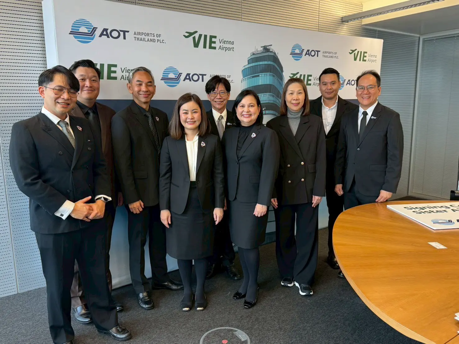 บริษัท ท่าอากาศยานไทย จำกัด (มหาชน) (AOT) ร่วมลงนามในบันทึกข้อตกลงความร่วมมือระหว่างท่าอากาศยาน (Sister Airport Agreement: SAA) กับ Flughafen Wien Aktiengesellschaft (FWAG) ซึ่งบริหารจัดการท่าอากาศยานเวียนนา (Vienna Airport) สาธารณรัฐออสเตรีย โดยมีนางสาวปวีณา จริยฐิติพงศ์ รักษาการผู้อำนวยการใหญ่ AOT และ Mr. Julian Jäger ตำแหน่ง Joint Chief Executive Officer & Chief Operating Officer, FWAG ร่วมลงนามในบันทึก SAA พร้อมด้วย นายศิโรตม์ ดวงรัตน์ รองกรรมการผู้อำนวยการใหญ่ สายงานพัฒนาธุรกิจและการตลาด ร่วมกับคณะผู้แทนของ AOT และคณะผู้บริหารของ FWAG เป็นสักขีพยานในพิธีลงนามครั้งนี้ เมื่อวันที่ 11 ธันวาคม 2568 ณ ท่าอากาศยานเวียนนา กรุงเวียนนา สาธารณรัฐออสเตรีย