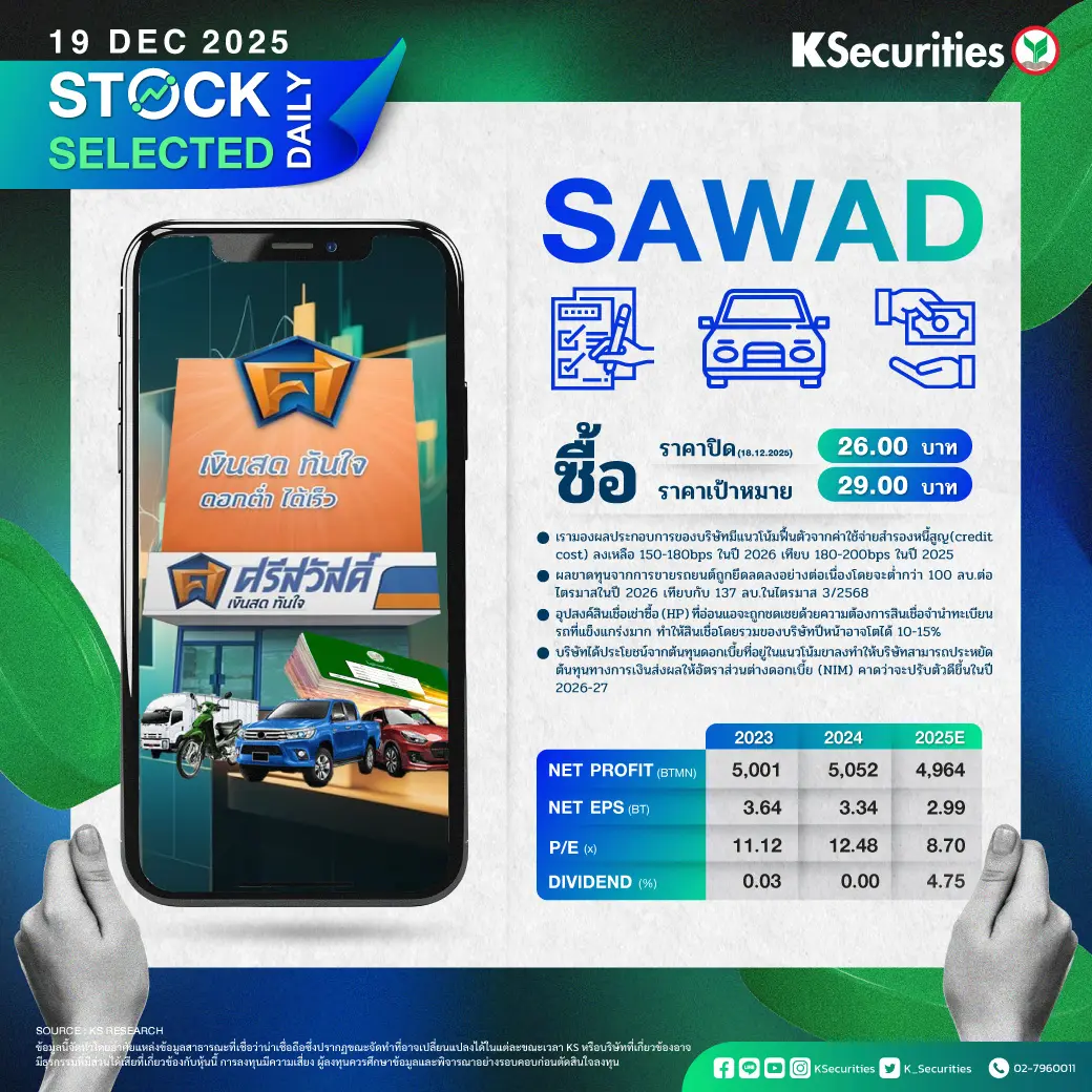 SAWAD: ได้ประโยชน์จากต้นทุนดอกเบี้ยที่อยู่ในแนวโน้มขาลง