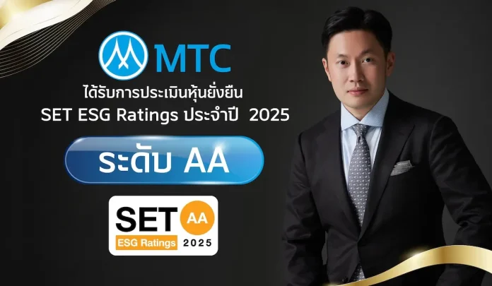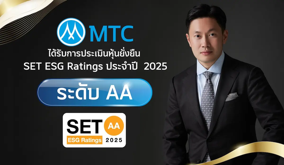 MTC คว้า ESG Ratings ระดับ ‘AA’ สะท้อนแนวทางการดำเนินธุรกิจอย่างยั่งยืนบนมาตรฐานระดับโลก